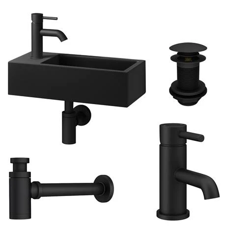 The stylish Arezzo rectangular wall hung basin package, a high quality square matt black ceramic basin with a single tap hole. Provides you with a handy wall mounted space-saving solution for your cloakroom or en-suite. Package includes a stylish round matt black mixer tap, exposed bottle trap with matching basin waste.