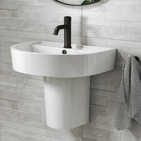 With its sleek look and practical wall mounted design, the Arezzo modern curved wall hung basin makes for a space saving addition to any bathroom. It’s semi pedestal feature hides pipework neatly while providing extra floor space. This floating basin has been designed for use with a Mono basin mixer taps