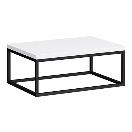 The smart space-saving Arezzo 700mm wide stone resin gloss white wall hung counter top basin shelf features minimalist clean lines. Supplied with a supporting matt black steel towel rail frame, perfect for creating a stunning, fashionable and chic bathroom interior. The practical square frame provides a space to hang your towel, keeping it close to hand. Complete the look with one of our stylish counter top basins, matt black basin taps and exposed bottle traps (not included).