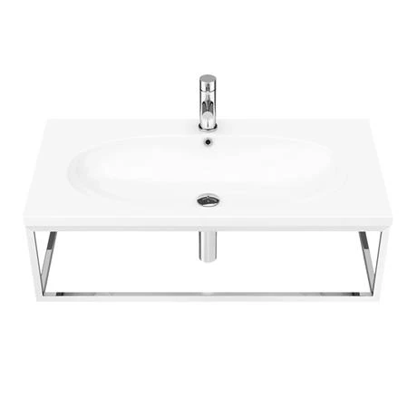 The smart and space-saving Arezzo 900mm large wall mounted basin comes complete with a supporting matt black steel towel rail frame, perfect for creating a stunning, fashionable and chic bathroom interior.Â