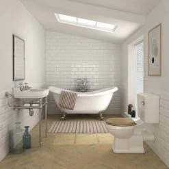 This Basin is available in a choice of 1, 2 or 3 Tap holes (1TH pictured), this option opens you up to be able to choose from the entire range of Burlington Taps. This Basin comes complete with a stunning Chrome Wash Stand.