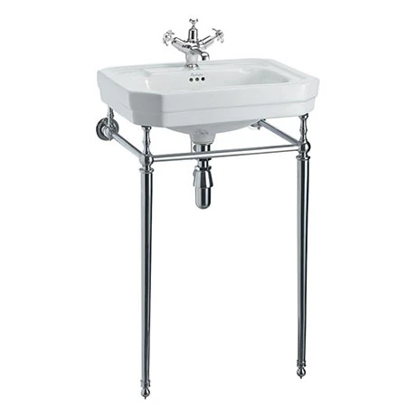 The Burlington Victorian 56cm Medium Basin and Chrome Wash Stand is both classically timeless and versatile. The medium Victorian basin comes paired with an elegant polished chrome Regal wash stand creating a truly striking look in your bathroom. Regal wash stands are higher than standard wash stands, making them more comfortable for taller people, the elderly or those prone to back pain.