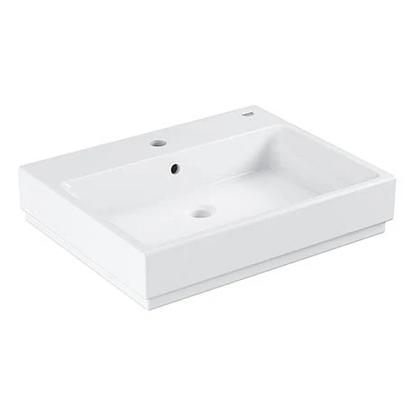 The Cube Ceramic range of basin designs has been created to suit your personal style and routine. This 600mm wall hung basin is ideal for creating a modern bathroom scheme. It features a single tap hole and built in overflow. Thanks to GROHE PureGuard coating, the ceramic surface locks out dirt and inhibits bacteria. Manufactured from high grade fine fire clay and finished in Alpine White, it’s durable surface will look good for years to come.Â