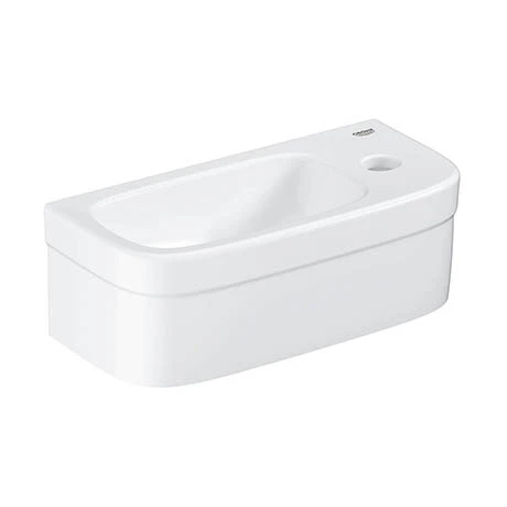 The Euro Ceramic range has been specially designed to match up an excellent performance with an attractive price. This Euro Ceramic 370mm wall hung basin is a modern classic with good looks and delicate lines. It features a right hand tap deck with single tap hole. Manufactured from high grade vitreous china and finished in Alpine White, it’s durable surface will look good for years to come.Â