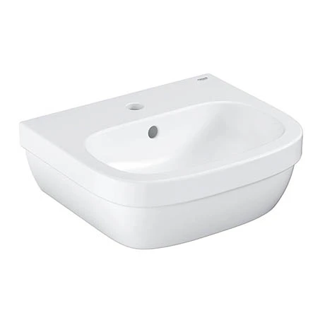 The Euro Ceramic range has been specially designed to match up an excellent performance with an attractive price. This Euro Ceramic 450mm wall hung basin is a modern classic with good looks and delicate lines. It features a single tap hole and built in overflow. Manufactured from high grade vitreous china and finished in Alpine White, it’s durable surface will look good for years to come.Â