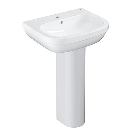 The Euro Ceramic range has been specially designed to match up an excellent performance with an attractive price. This Euro Ceramic 550mm basin and full pedestal will make a subtle difference to any bathroom look. It features a single tap hole and built in overflow. Manufactured from high grade vitreous china and finished in Alpine White, it’s durable surface will look good for years to come.Â