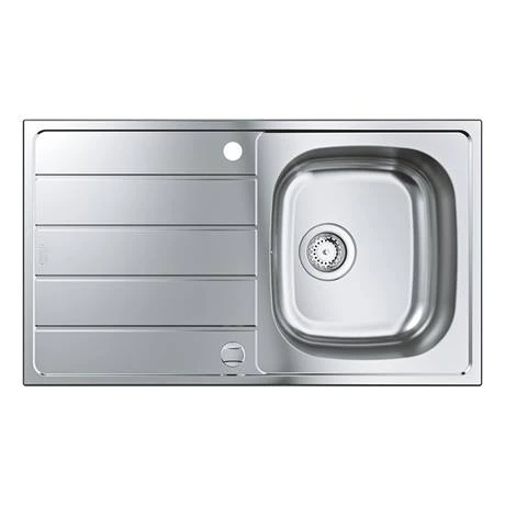 The Grohe K200 1.0 Bowl Stainless Steel Kitchen Sink is a practical, durable fit for any kitchen. The sink has two pre-drilled tap holes, meaning that it is fully reversible. The sink offers plenty of internal space, with a bowl depth of 16cm, meaning even large pans will fit comfortably. The sink is made from GROHE StarLight AISI 304 grade stainless steel, meaning it is both durable and attractive with a sparkling finish. GROHE Whisper insulation on the underside of the sink dampens noise, and the automatic waste fitting with remote control means you can pull the plug without having to put your hand in the dirty water.