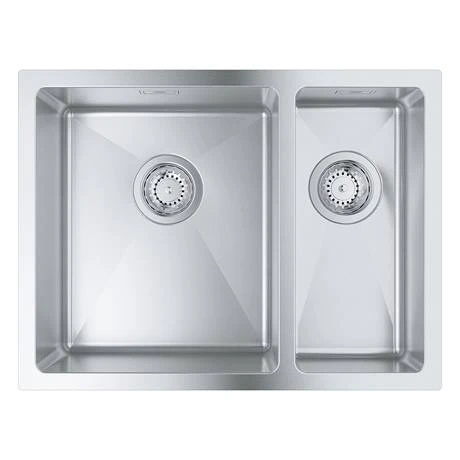 The Grohe K700 stainless steel sink is a sleek, stylish model that will fit perfectly into minimalist kitchen schemes. The main bowl, which should be on the left, has a depth of 20cm making it extremely practical, comfortably fitting large pans. The sink is made from GROHE StarLight AISI 304 grade stainless steel, with a brushed finish to make the surface less porous and easier to keep clean, meaning it will look good for longer. Choose between a classic topmount installation with 1mm profile or a flush-mount version with a 1.5mm recess perfect for fitting flush to the worktop.