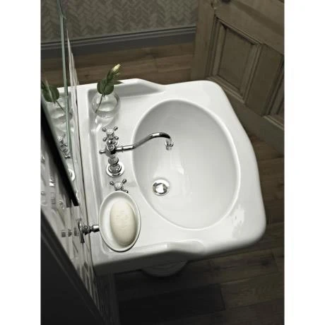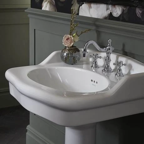 A great choice for modern and period bathrooms, the New Victoria range will make a real statement. This stunning Standard Basin and Pedestal is crafted from high grade white vitreous china and comes with 3 tap holes. Combine with Heritages range of elegant traditional taps to complete the look. Heritage offer a lifetime guarantee on all of their sanitaryware.