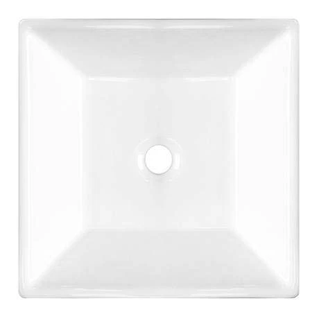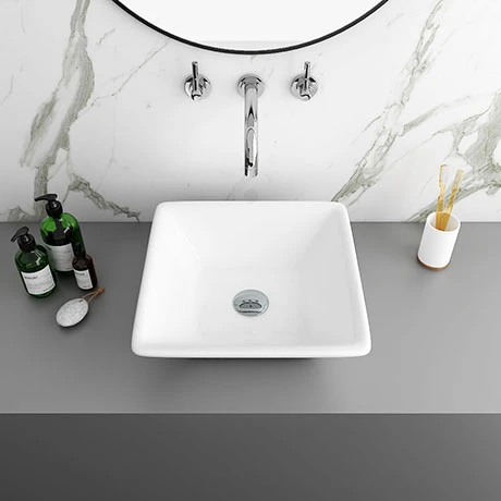 The Lazio square counter top basin features a stylish square base with sloping edges. Designed to be mounted onto a worktop console or piece of vanity furniture. The basin comes with no tap holes and is to be used alongside a counter or wall mounted outlet. Some small dimensional variation may occur due to manufacturing tolerances.
