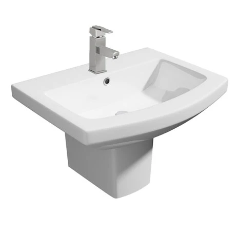 The super stylish Monza wall hung square modern short projection 1 tap hole basin with semi pedestal, it’s contemporary elegant lines and compact size make it ideal for smaller bathrooms and en-suites; made from high grade ceramic with a smooth cool white finish. The 550mm wide basin only projects from the wall by 415mm. Comes supplied with a semi pedestal which helps give your bathroom an open look.