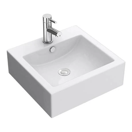 The Nuie Square 470 1 tap hole ceramic counter top basin, perfect for installation on any counter top in a contemporary style bathroom. Precise engineering and manufacturing quality ensure long life of this visually stunning counter top wash basin.