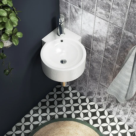 Compact bathroom? This Othello Wall Hung Corner Basin offers a unique way to save space. Eye-catching and durable, it’s made from tough ceramic with a gleaming white gloss finish. The design has a sleek and modern look, while its small ledge offers room for an equally contemporary tap. Consider opting for a cylindrical mixer to complement the round shape of the basin.