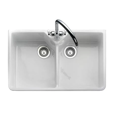 The Double Bowl Rangemaster Belfast sink combines great looks with elegance. It’s twin extra large deep bowls are ideal for washing pans and trays that won’t fit in the dishwasher. Made from fire-clay ceramic providing superior strength while it’s smooth high gloss finish looks stunning.