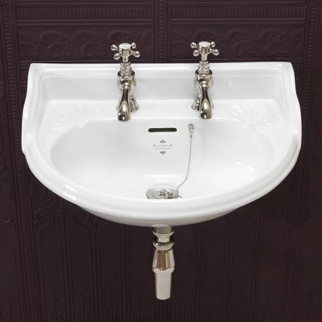 A beautifully traditional Victorian 530mm wide wall mounted cloakroom basin from Silverdale Bathrooms. This stylish cloakroom basin is ideal for en-suites and cloakrooms where space is at a premium. Features a curved front with distinctive high splash backs. Each individual piece of sanitary ware has been carefully considered in its design, being based on authentic original pieces and lovingly re-created.