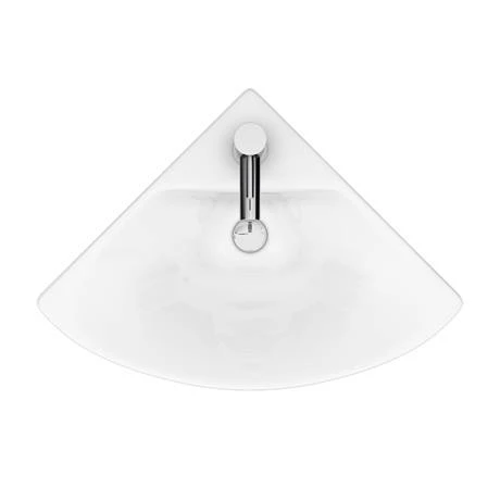The modern Venice 1 tap hole corner basin and pedestal, it’s contemporary elegant soft lines and compact size make it ideal for smaller bathrooms and en-suites; made from high grade ceramic with a smooth cool white finish. Comes with a full pedestal.