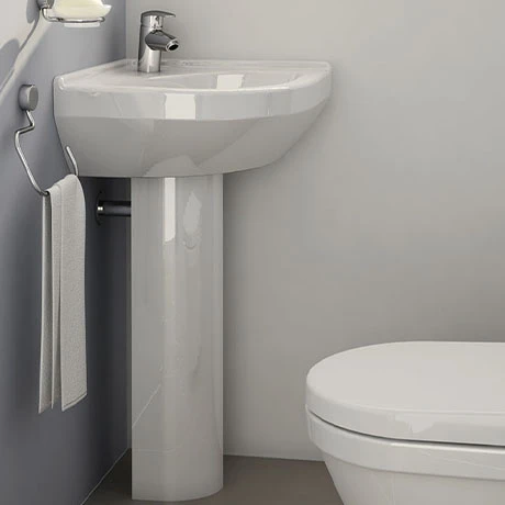 Make the most of limited space with this S50 Round Corner Basin and Pedestal with single tap hole. Designed to fit flush into corner spaces, the S50 range is manufactured to the highest standards using the latest technologies.