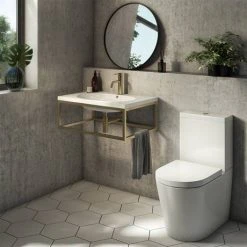 Arezzo 500 Wall Hung Basin with Brushed Brass Towel Rail Frame